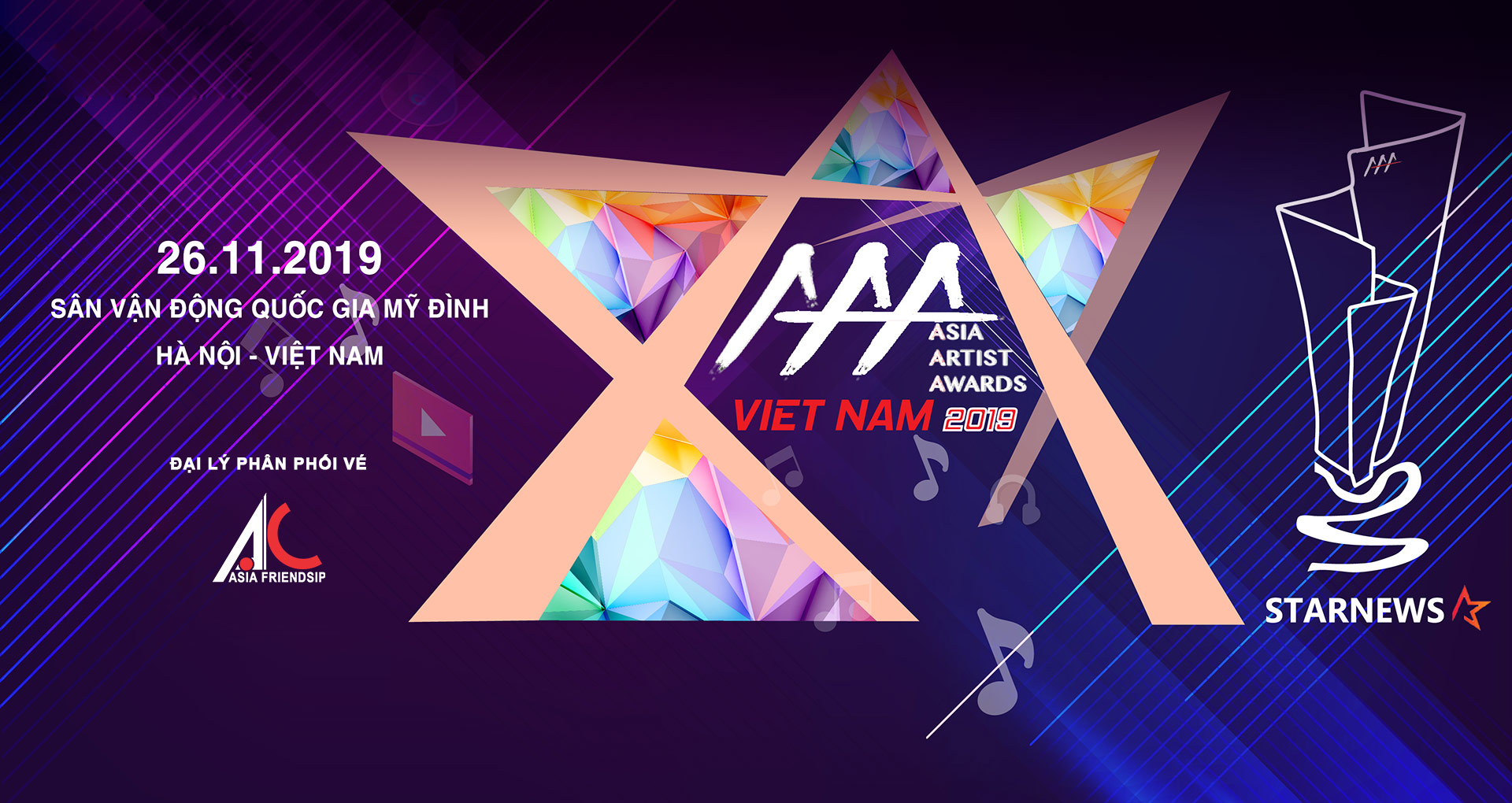 Năm 2019, lần đầu tiên Lễ trao giải thưởng AAA được tổ chức tại nước ngoài, Việt Nam là quốc gia đã giành quyền đăng cai sau khi vượt qua Thái Lan và Đài Loan (Trung Quốc).